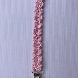 Virkad napphållare i 100% bomullsgarn. Blyfri silverfärgad klämma med plastinlägg och BPA-fri silikonring. Silikonringen passar även till napp med ring då du trär den över ringen.