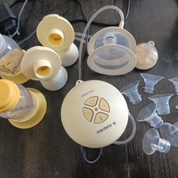 Elektrisk bröstpump för enkel användning. Den levereras med alla tillbehör som visas på bilden.
