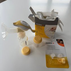 Medela bröstpump med tillbehör. Inkluderar: