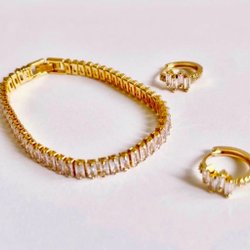 Två armband set 24k Guldpläterad Perfekt för att komplettera din . Armbands öppnas och stängs med ett gångjärn. Pläterad guaranterad och kommer med ett hög kvalitet låda och Guldpläterad smycke rengonringsduk.