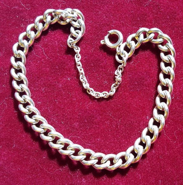 Ett Silverpläterat armband med kedjelänkdesign och ett spänne. Vikt 13 g. L 18,5 cm bred 6 mm