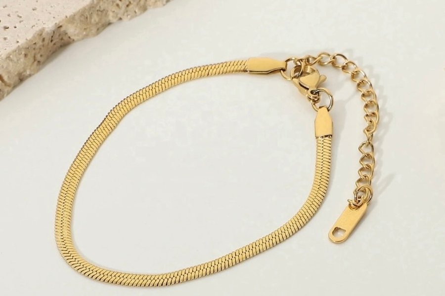 Ett elegant Guldpläterad rostfritt stål armband med ett justerbart kedjelås.