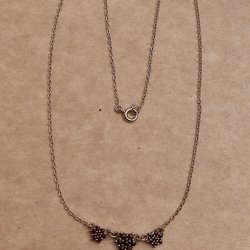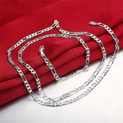 Ett silverfärgat halsband med karbinhake. Kedjan är av modell pansarlänk.