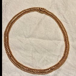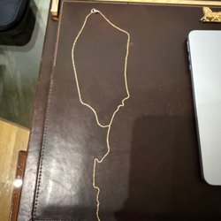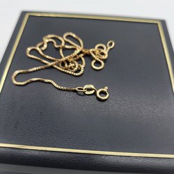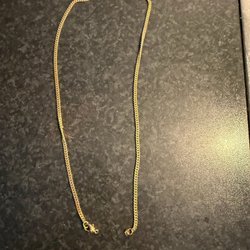 Den avbildade kedjan är troligtvis en tunn pansarlänk (curb chain) eller möjligen en x-länk, vanligtvis tillverkad av guld. Pansarlänkar är klassiska och robusta kedjor.