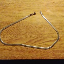Ett silverfärgat halsband med ett platt ormlänk mönster. Halsbandet har en klassisk och tidlös design som passar till många olika stilar.