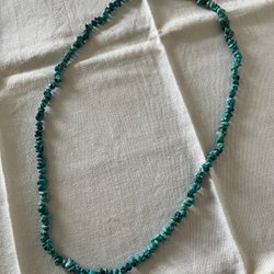 Halsband med silverfärgade kulor och mörkare kedja. Längd 80 cm