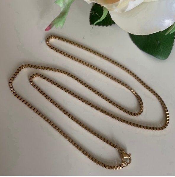 En elegant guldpläterad kedja, 58cm med ett fint spänne. Perfekt för att komplettera din stil.