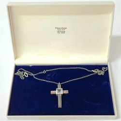 Halsband med ett kors som hänge. Korset är dekorerat med små stenar.