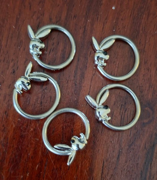 5 st ringar i titan med playboy bunny.