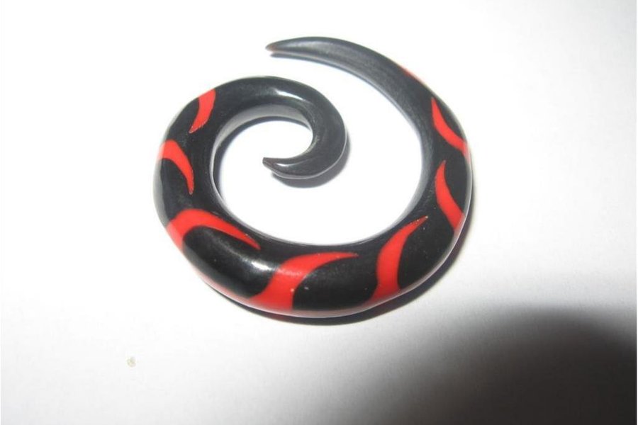 TÖJNING SPIRAL PIERCING SVART/RÖD MED ELDSFLAMMOR 6 MM (ORGANISK)
