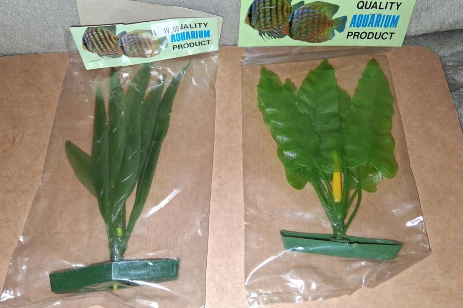 Två nya olika akvarieväxter "ej levande" för att dekorera ditt akvarium. Den ena växten har smala blad och den andra har bredare blad. #finns fler# Frakt via egna frimärken 20 kr inklusive brev