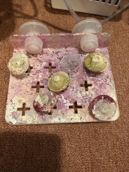 Hylla för att fästa fraggar av koraller, fästs med sugkoppar. Det som syns på bild är det som ingår.