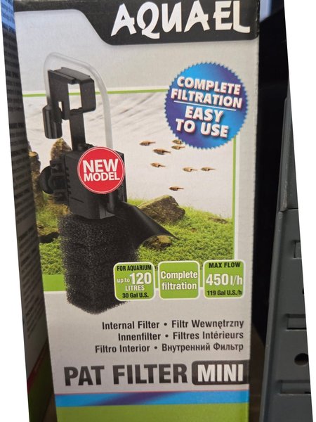 AQUAEL PAT FILTER MINI är ett innerfilter för akvarium upp till 120 liter. Den har en maximal flödeshastighet på 450 liter per timme och ger komplett filtrering. Ny i kartong.