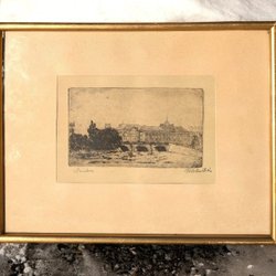 Etsning av Oscar Paul. Signerad av konstnären. Något gulnat och några veck.