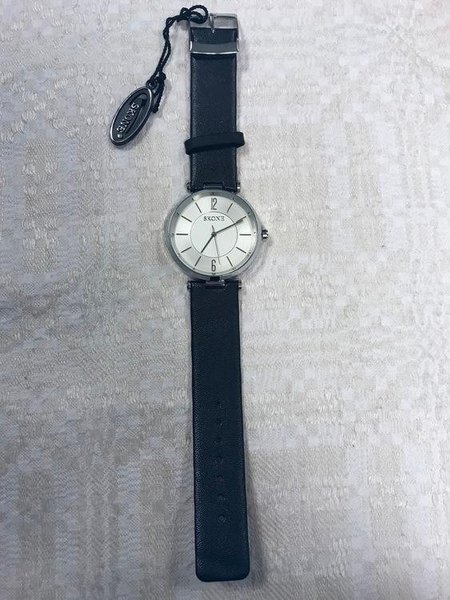 Klassisk herrklocka med svart läderarmband och elegant urtavla. Urtavlan är vit med vackra detaljeri silver.