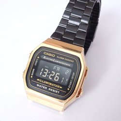 Klassisk Casio A159WGE armbandsur i guldfärgad design. Uret har en digital display och är vattentåligt. Perfekt för vardagsbruk.
