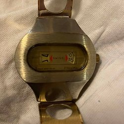 Digital armbandsur med svart armband. Klockan har digital display.