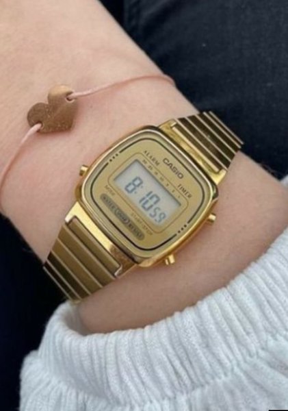 Casio armbandsur i guldfärgad design. Uret har digital display med alarm och timer funktion.