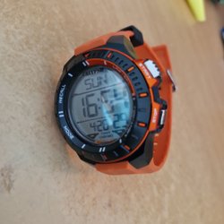 Säljer en Casio W-213 digital klocka. Klockan har ett blått plasthölje och ett svart gummiband. Den är vattentålig upp till 50 meter och har en 10-årig batteritid. Funktioner inkluderar fem larm och illuminator.
