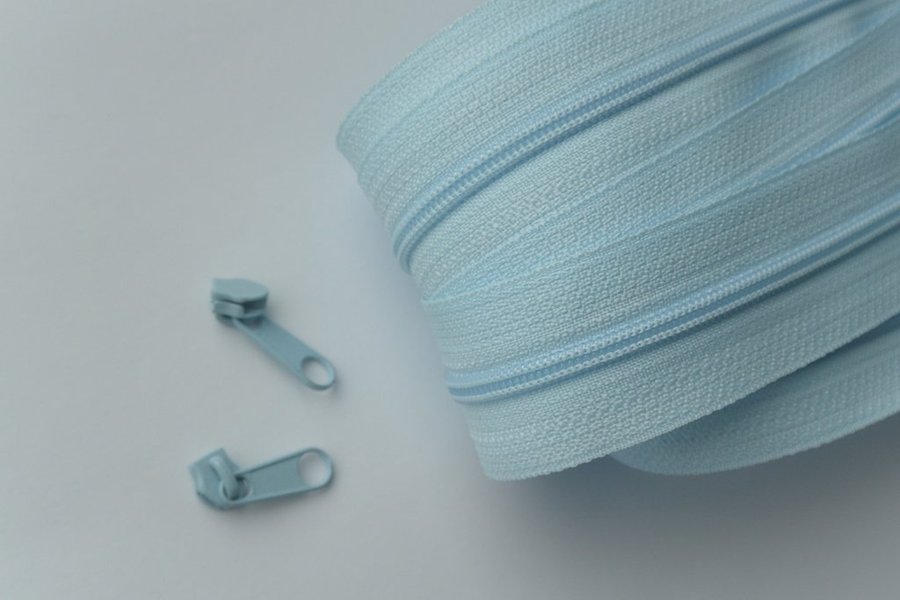 Blixtlås på metervara, ljusblå, 3 mm bred