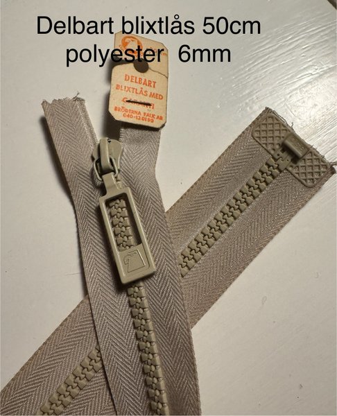 Delbart 6mm blixtlås polyester Beige