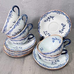 BLÅ BLOMSTER - KAFFESET KOPPAR FAT ASSIETT 12 DELAR - 10/1549