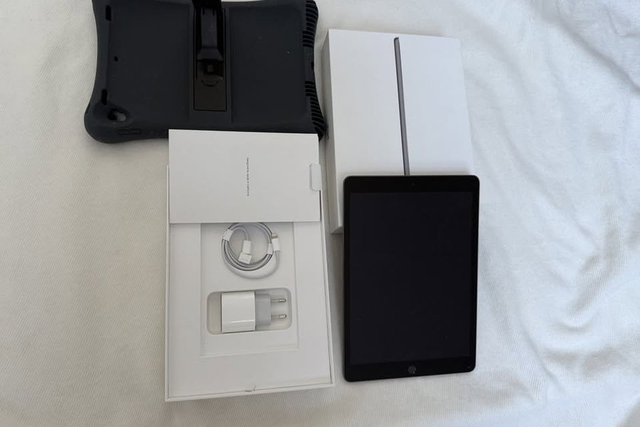 iPad 9th generation – 256 GB i bra skick med kartong och laddare.