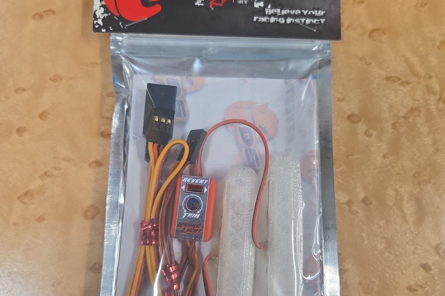 DS Racing bromsljusset. Innehåller en kontrollenhet och två ljusenheter. Designad för att ge realistiska bromsljuseffekter för RC bil skala 1/10