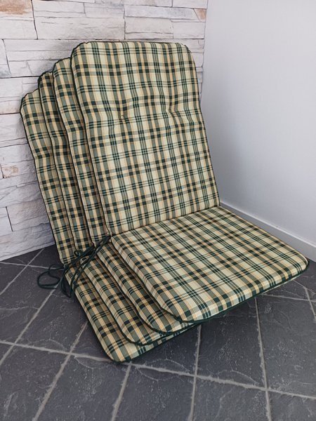 4 st Stolsdynor med ett klassiskt rutigt mönster i grönt, beige och vitt.