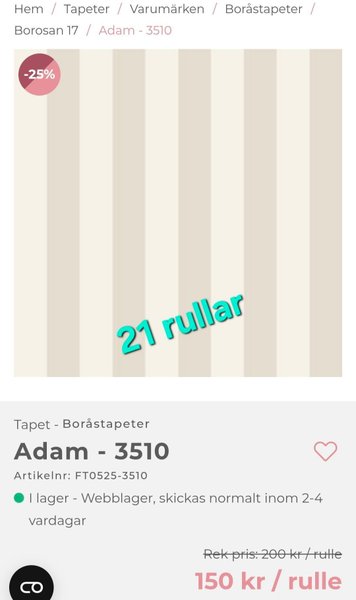890:- för 21 st (pris per rulle: 42:-)