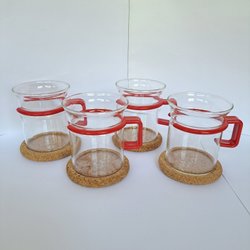 Tre glas muggar med handtag.