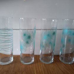 Fyra glas med vriden fot.