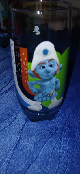 Glas med motiv från Smurfarna.