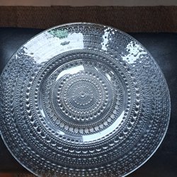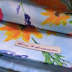 Ett glas med ett mönster av färgglada blommor. Blommorna är i olika storlekar och färger som rött, lila, gult och grönt.