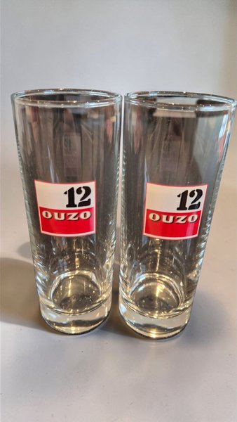 Glasen är stilrena, klara och cirka 14 cm höga med den ikoniska röd/vita "12 OUZO"-etiketten. Perfekta för äkta grekisk ouzo (med vatten och is), longdrinks eller som snygga vardagsglas med retrokänsla.