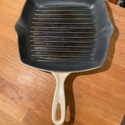 Grillpanna med handtag. Måttet är 26, 5 cm x 26,5 cm upptill, hög ca 4 cm, bredd med handtag 47,5 cm, inte magnetiskt. Oanvänd.