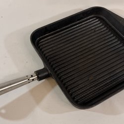 Grillpanna med non-stick beläggning. Pannan har en räfflad yta för grillning och ett handtag för enkel hantering. Perfekt för att grilla kött och grönsaker.