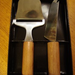 En osthyvel med ett vitt handtag.