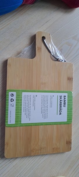 Skärbräda i bambu. Hållbar och snäll mot dina knivar. Rengör med en fuktig trasa och olja in ibland med neutral matolja.35x20 cm
