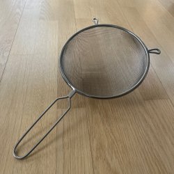 Durkslag i silikon med handtag som går att platta till för förvaring.