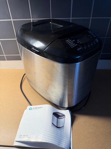 Andersson brödmaskin med flera programval. Inkluderar användarmanual på engelska, svenska och norska.