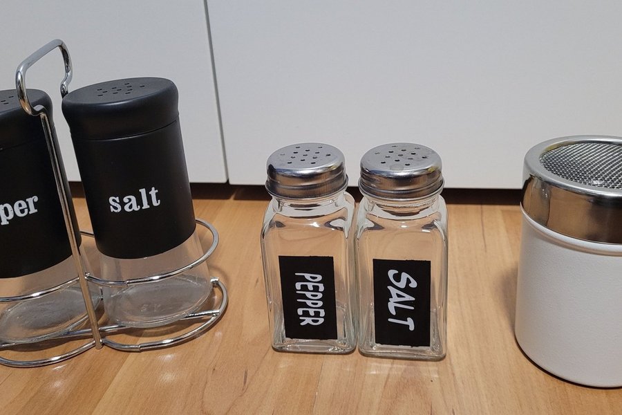 2 stycken set med kryddströare för salt och peppar & en ströare. Knappt använda och kommer ifrån ett djur och rökfritt hem.