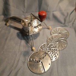 Säljer en fin så gott som ny lite använd råkostkvarn, den har 5 st rivskivor. Skick se bilder.