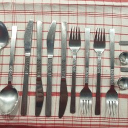 Sked/slev. 20 cm lång, skålningen är 5,5 cm bred och 6,5 cm lång. Skaftet 13,5 cm långt. Rostfrottstål. Mindre slitage I form av repor. Kan vara En sked i ett salladsbestick, men är en trevlig sked/slev till servering.
