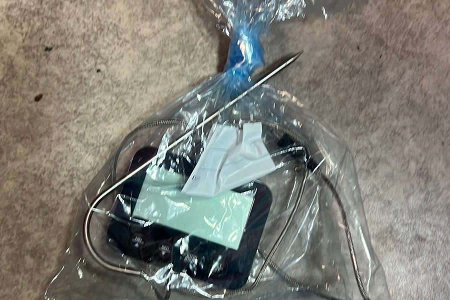 Digital stektermometer för matlagning. Termometern har en display och en sond.