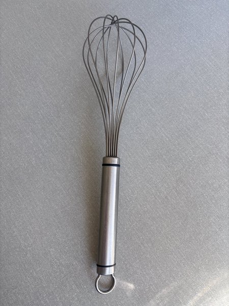 Visp i metall med handtag i rostfritt stål. Perfekt för bakning och matlagning. Krok för upphängning. 29 cm lång.
