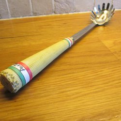 Slev med stålhandtag.