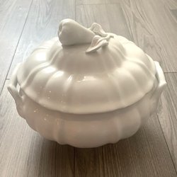 Består av en bottenplatta och ett kupolformat lock med handtag. Färg: vit/genomskinlig. Används för att förvara tårta.