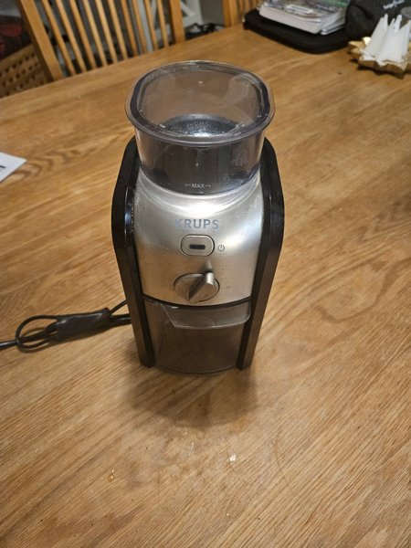 Krups kaffekvarn för malning av kaffebönor, verkar klara både espresso och brygg.