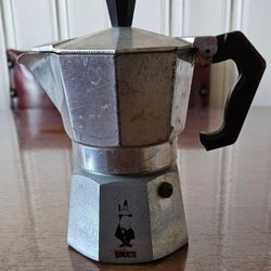 Jag säljer en mellanstor Bialetti Moka Express mockabryggare i aluminium. Perfekt för att brygga espresso på spisen. Det är sannolikt en "6-cup" variant. Använd men i mycket gott skick. Kvaliteten på dessa är som bekant hög.